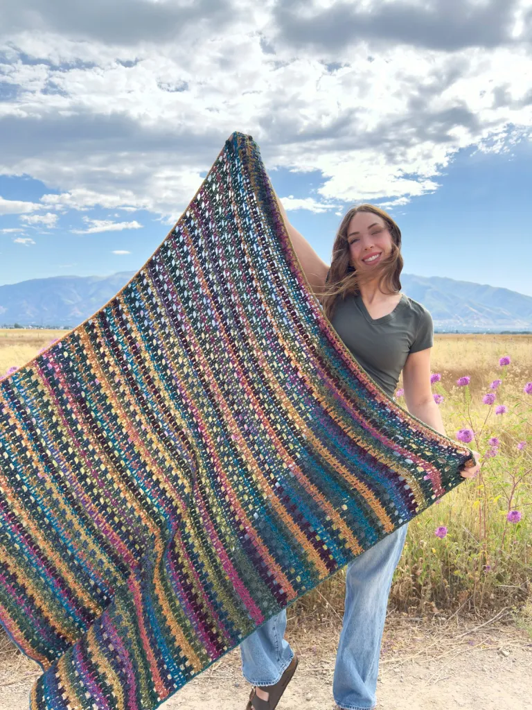 The Boxy Blooms Blanket is colorful, cozy, and works up faster than you’d expect. Whether you’re a beginner or seasoned crocheter, you’ll love watching each row bloom into life.